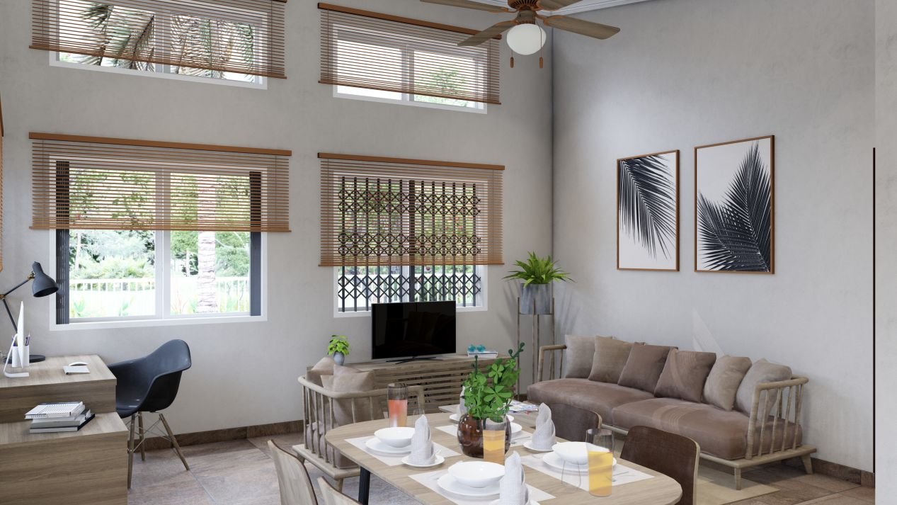 Our Sankofa House – One Bedroom is a beautifully designed spacious one bedroom that provides ample bedroom and living space. This is the perfect first home for young professional couples who want to experience sustainable luxury at Somanya Valley Estate. It comes with the same great amenities included in our duplex units which include high ceilings, ample living space, fitted kitchen featuring real hardwood cabinets, granite countertops and high end finishes.